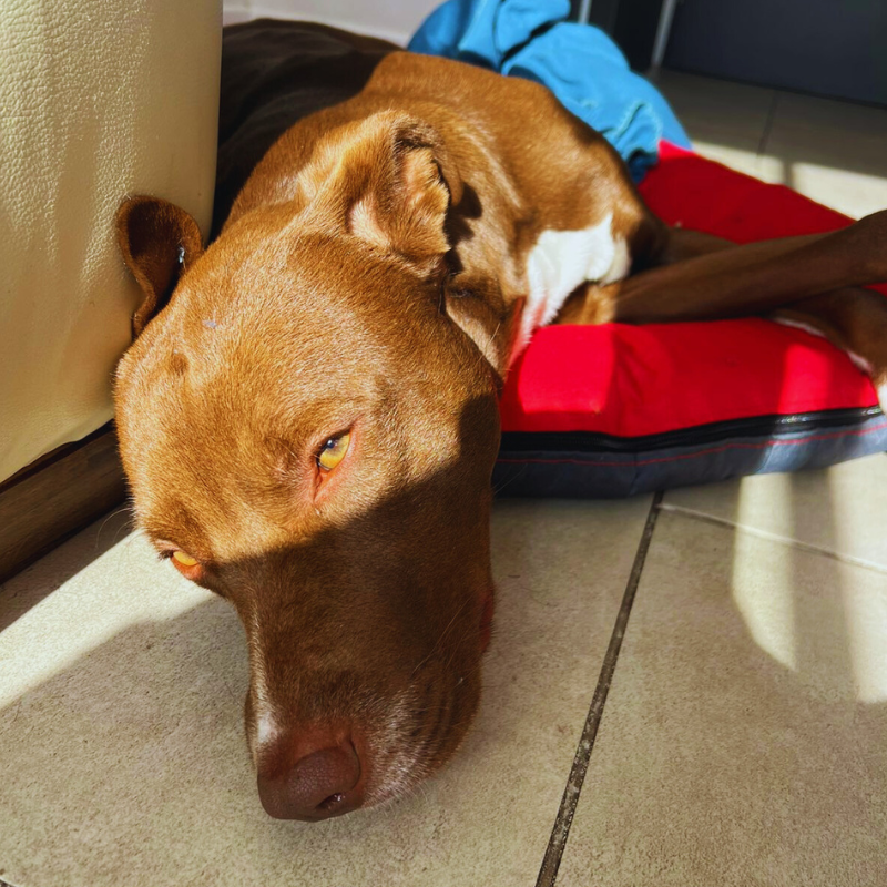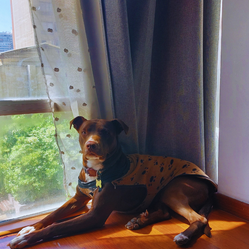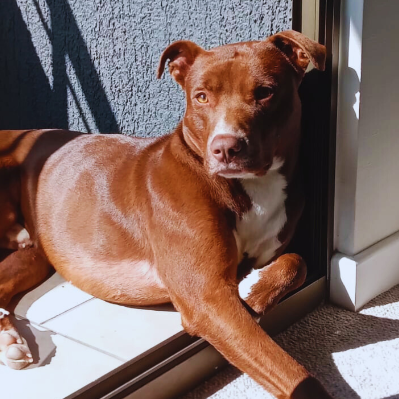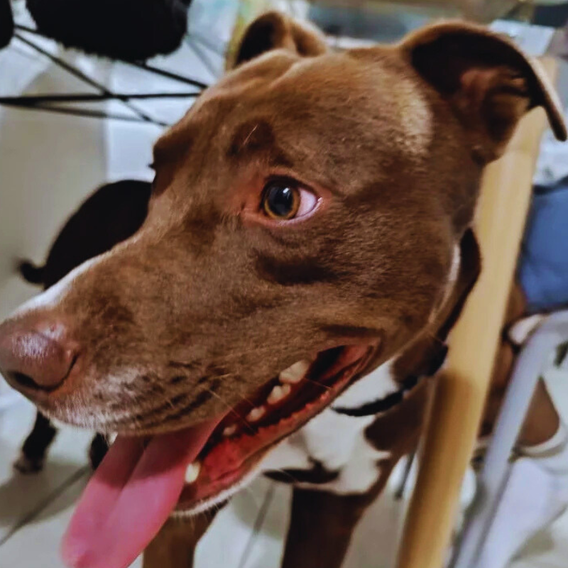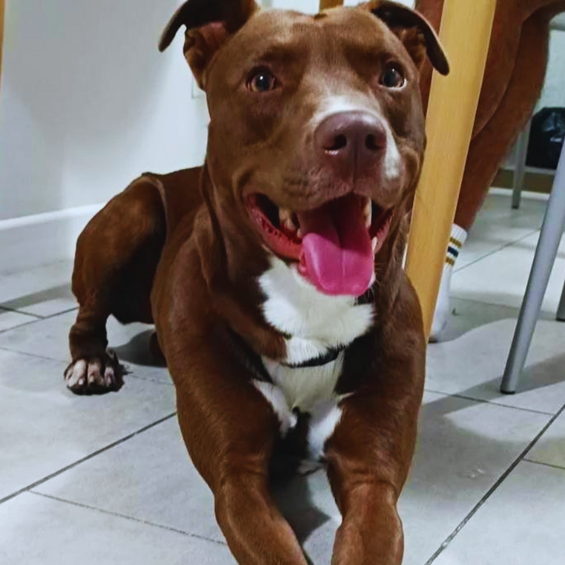 Soy un encantador Pitbull marrón rescatado de la calle, a través de mis fotos y momentos inolvidables, te contaré mi historia.